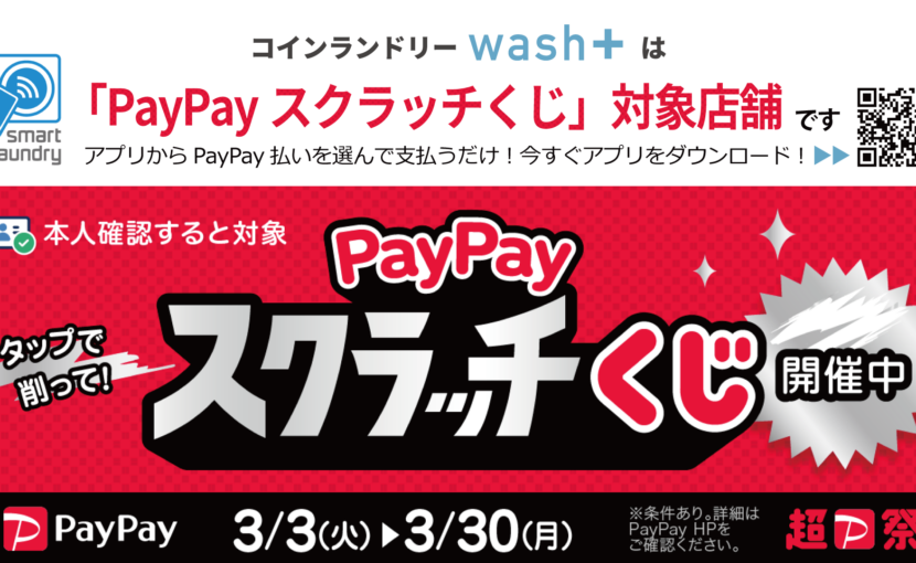 キャッシュレス決済のPayPayでは3月3日より「PayPayスクラッチくじ」を実施します。